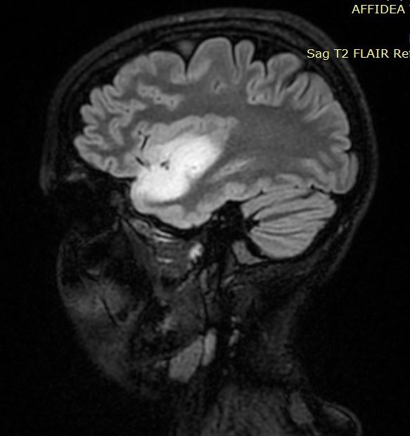 Ο έλεγχος με μαγνητική έδειξε όγκο στο αριστερό ημισφάιριο, σε δύσκολο σημείο, τόσο λειτουργικά όσο και χειρουργικά.