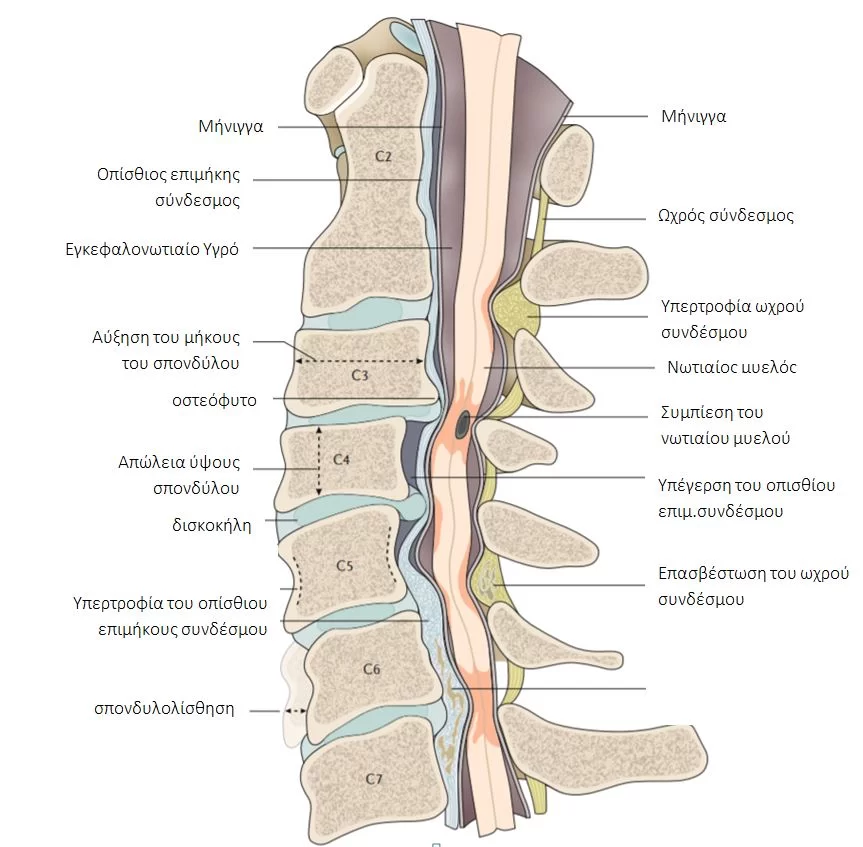 Στην πίεση του νωτιαίου μυελού και την ανάπτυξη αυχενικής μυελοπάθειας παίζουν ρόλο διάφοροι παράγοντες.