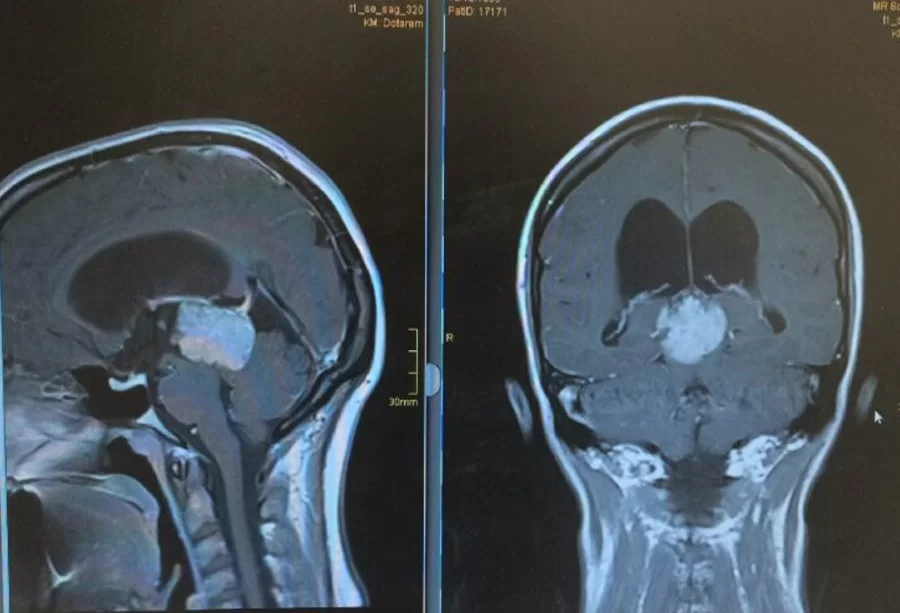 - Μαγνητική Τομογραφία Εγκεφάλου (MRI): Η μαγνητική θα δείξει με ακρίβεια την έκταση και τη φύση της βλάβης, δηλαδή αν είναι κυστική ή συμπαγής, αν πιέζει παρακείμενες δομές ή όχι, αν προσλαμβάνει σκιαγραφικό κ.ο.κ