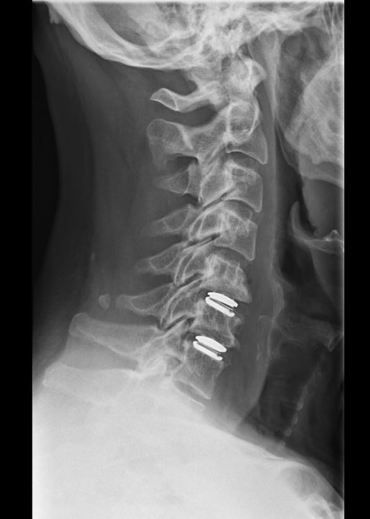 Ο στόχος της χειρουργικής επέμβασης είναι η αποσυμπίεση των νεύρων και του νωτιαίου μυελού με αφαίρεση του κατεστραμμένου μεσοσπονδύλιου δίσκου. Αυτό βελτιώνει τα συμπτώματα του νευρικού πόνου και του πόνου στον αυχένα. Μόλις αφαιρεθεί ο δίσκος και τα νεύρα δεν συμπιέζονται πλέον, στη θέση του δίσκου εισάγεται ένα ειδικό μόσχευμα για τη διατήρηση της κίνησης (τεχνητός δίσκος). Ο τεχνητός δίσκος λειτουργεί σχεδόν όπως ο κανονικός μεσοσπονδύλιος δίσκος (Εικόνα 4).