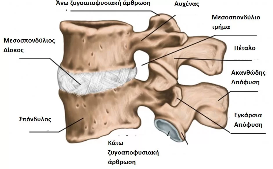Εικόνα 1: Σχηματική απεικόνιση μιας σπονδυλικής μονάδας. Δηλαδή δύο παρακείμενων σπονδύλων μαζί με τον μεσοσπονδύλιο δίσκο ανάμεσά τους.