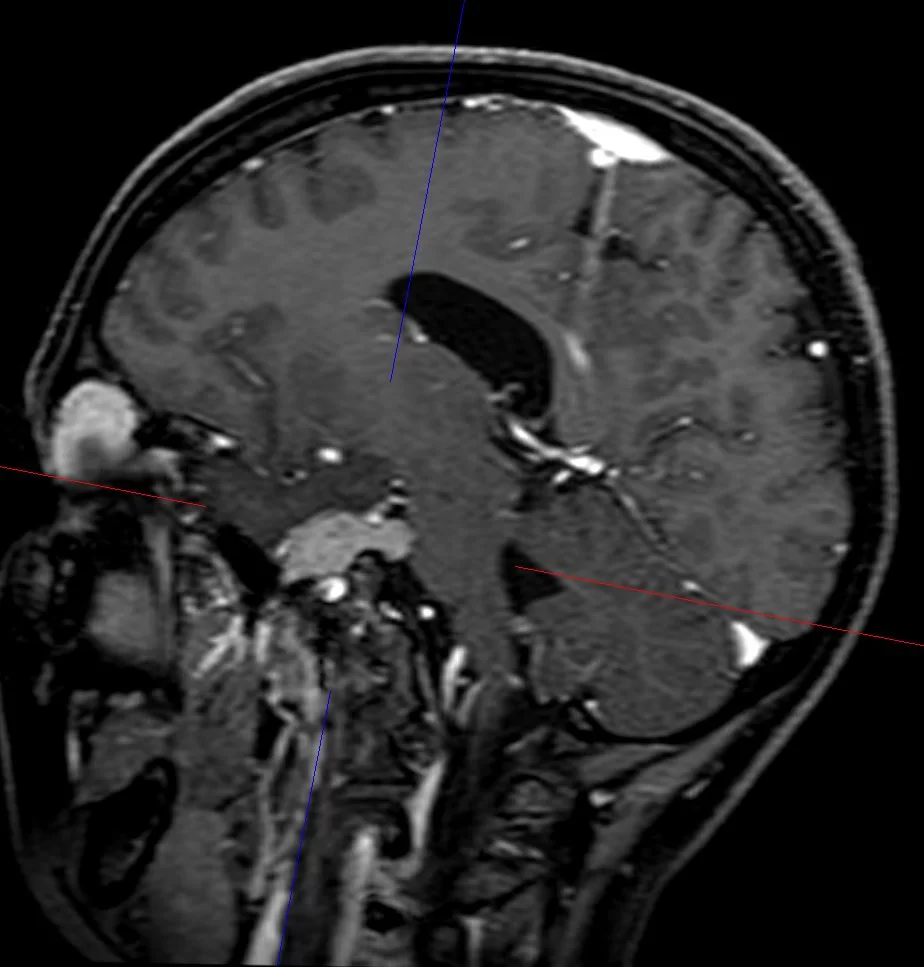 Η μετεγχειρητική μαγνητική τομογραφία εγκεφάλου δείχνει ένα εξαιρετικό αποτέλεσμα, με πλήρη αφαίρεση της βλάβης.